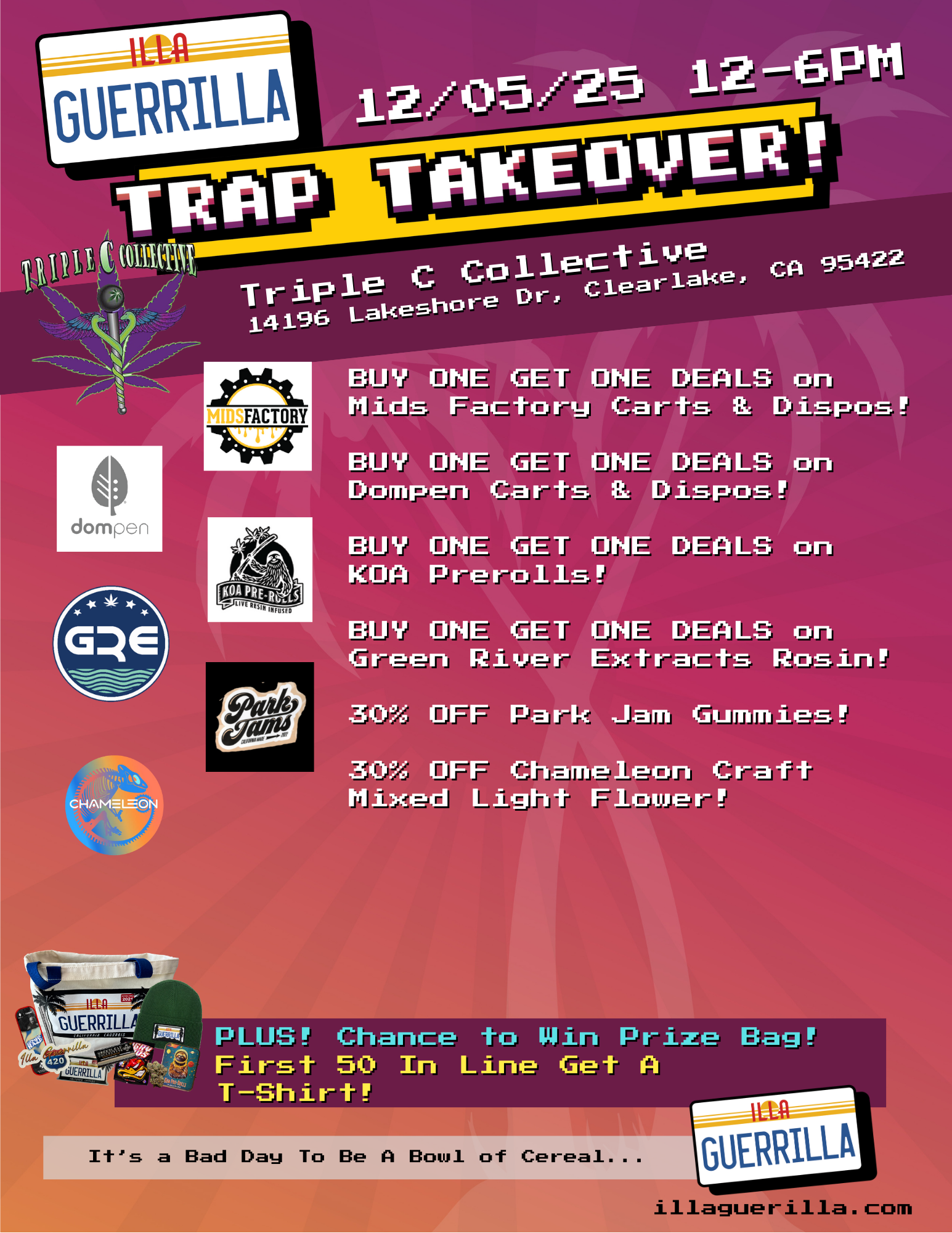 - Learn about Illa Guerrilla: Our Illa Guerrilla sales rep will be on-site with a booth, showcasing product displays and ready to answer all your cannabis questions.