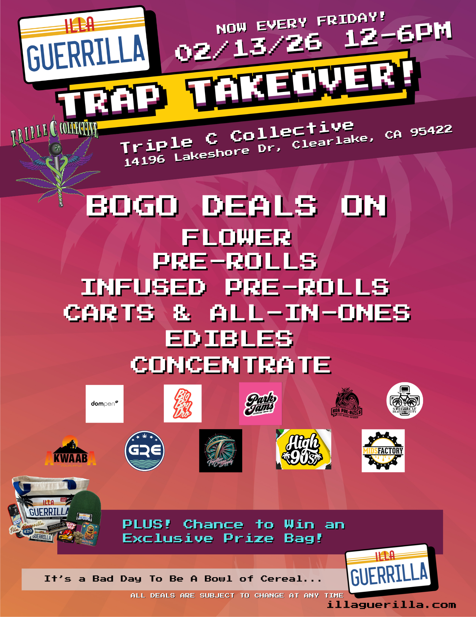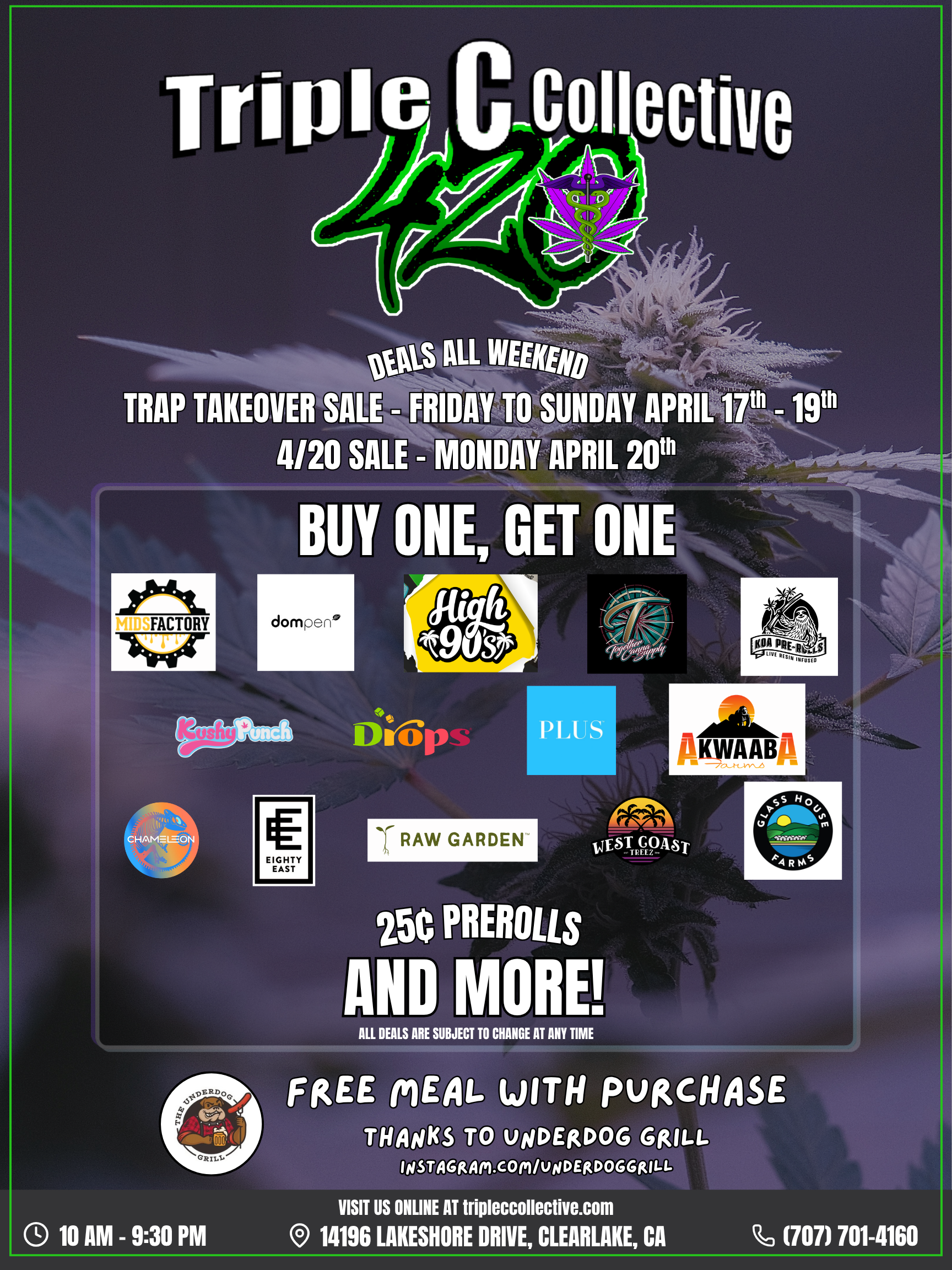 - Raffle Prizes: For every promo purchase, you’ll receive a raffle ticket. At 6 PM, we’ll draw a ticket for a chance to win an exclusive prize pack filled with promo products and swag from top cannabis brands. Don’t miss your chance to win big!
